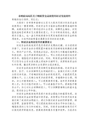 市财政局局长关于财政资金高效使用研讨交流材料.docx