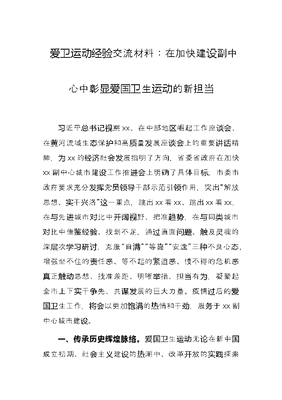 爱卫运动经验交流材料:在加快建设副中心中彰显爱国卫生运动的新担当.docx