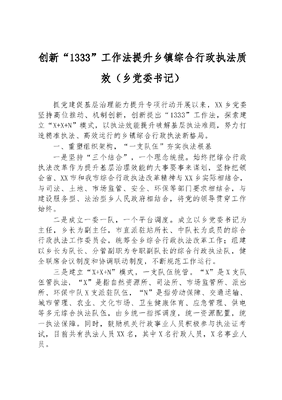 创新“1333”工作法提升乡镇综合行政执法质效(乡党委书记).docx