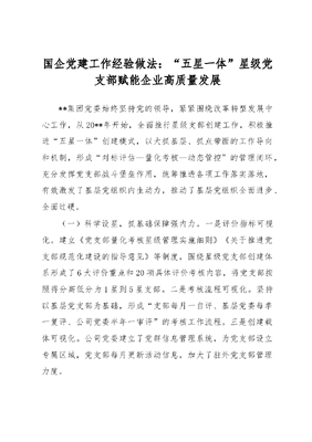国企党建工作经验做法:“五星一体”星级党支部 赋能企业高质量发展.docx