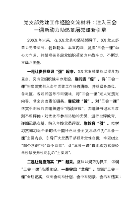 党支部党建工作经验交流材料:注入三会一课新动力助燃基层党建新引擎.docx