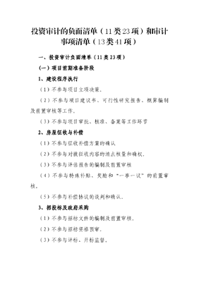 投资审计的负面清单(11类23项)和审计事项清单(13类41项).docx