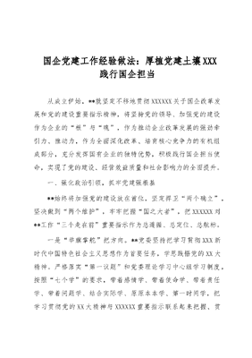 国企党建工作经验做法:厚植党建土壤 践行国企担当.docx