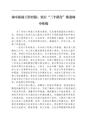 幼小衔接工作经验:实行“三个联合”+推进幼小衔接.docx