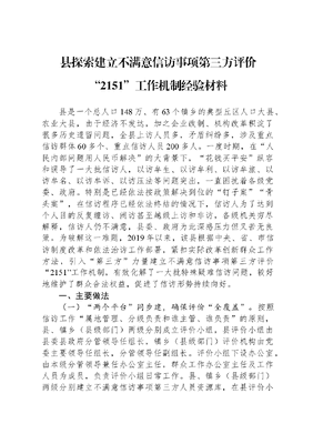 县探索建立不满意信访事项第三方评价“2151”工作机制经验材料.docx