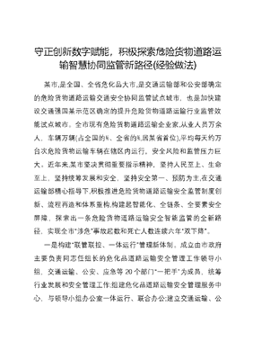 守正创新数字赋能,积极探索危险货物道路运输智慧协同监管新路径(经验做法).docx