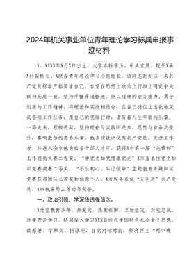2024年机关事业单位青年理论学习标兵申报事迹材料.docx