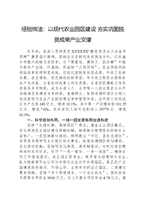 经验做法:以现代农业园区建设+夯实巩固脱贫成果产业支撑.docx