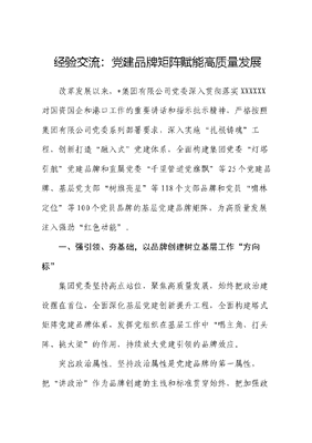 经验交流:党建品牌矩阵赋能高质量发展.docx