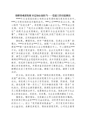 强根铸魂谋发展+不忘初心显担当——党建工作经验做法.docx