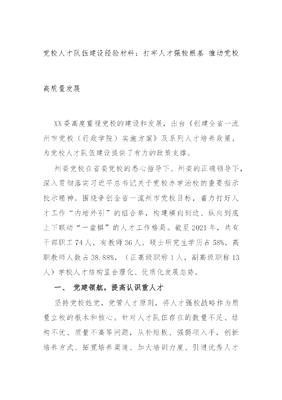 党校人才队伍建设经验材料:打牢人才强校根基 推动党校高质量发展.docx