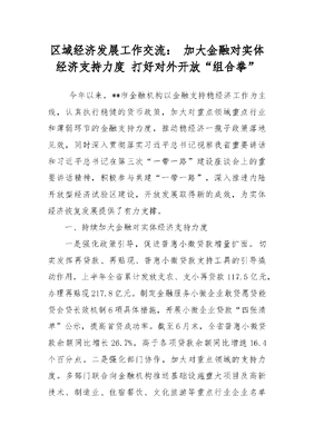 区域经济发展工作交流:加大金融对实体经济支持力度打好对外开放“组合拳”.docx