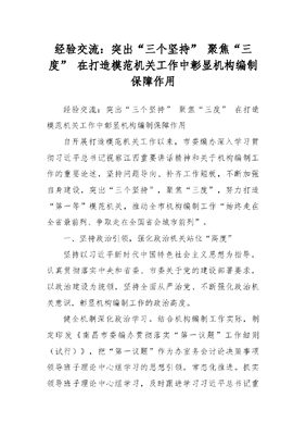 经验交流:突出“三个坚持”聚焦“三度”在打造模范机关工作中彰显机构编制保障作用.docx