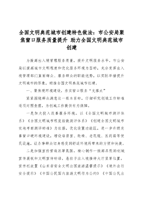 全国文明典范城市创建特色做法:市公安局聚焦窗口服务质量提升助力全国文明典范城市创建.docx