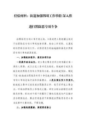 经验材料:街道加强四项工作举措 深入推进扫黑除恶专项斗争.docx