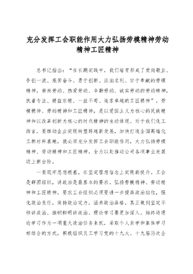 充分发挥工会职能作用大力弘扬劳模精神劳动精神工匠精神的经验材料.docx