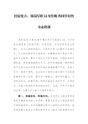 经验发言:领岗尽职 以身作则 共同学好终身必修课.docx