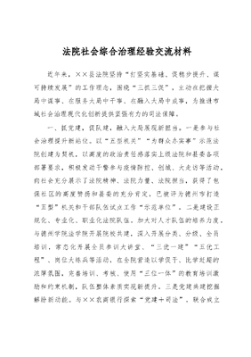 法院社会综合治理经验交流材料.docx