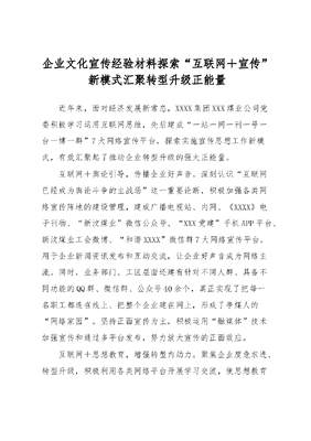 企业文化宣传经验材料探索“互联网+宣传”新模式汇聚转型升级正能量.docx