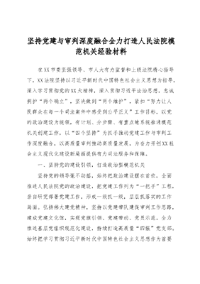 坚持党建与审判深度融合全力打造人民法院模范机关经验材料.docx
