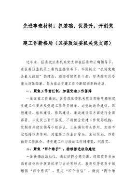 先进事迹材料:抓基础、促提升,开创党建工作新格局区委政法委机关党支部.docx