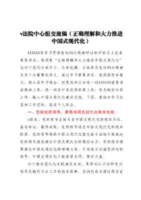 法院中心组交流稿(正确理解和大力推进中国式现代化).docx