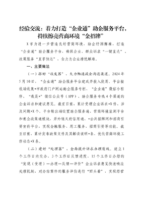 经验交流:着力打造“企业通”助企服务平台,持续擦亮营商环境“金招牌”.docx