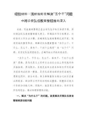 经验材料:浅析如何在解决“五个干”问题中将公安队伍教育整顿推向深入.docx