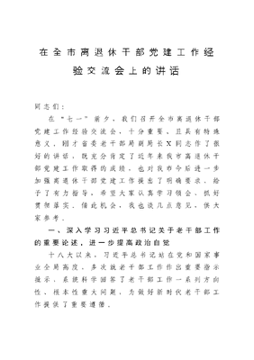 在全市离退休干部党建工作经验交流会上的讲话.docx