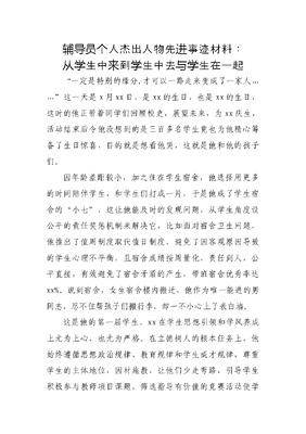 辅导员个人杰出人物先进事迹材料:从学生中来 到学生中去 与学生在一起.docx