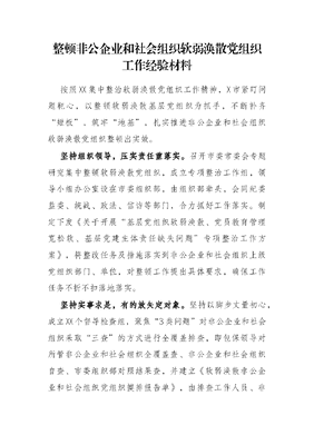 整顿非公企业和社会组织软弱涣散党组织工作经验材料.docx
