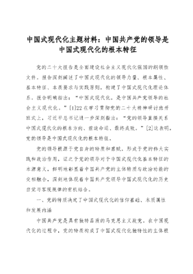 中国式现代化主题材料:中国共产党的领导是中国式现代化的根本特征.docx