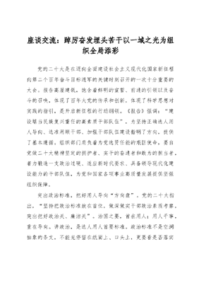 座谈交流:踔厉奋发 埋头苦干 以一域之光为组织全局添彩.docx