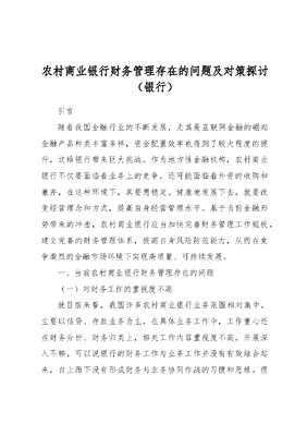 农村商业银行财务管理存在的问题及对策探讨(银行).docx