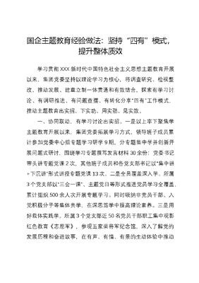 国企主题教育经验做法:坚持“四有”模式,提升整体质效.docx