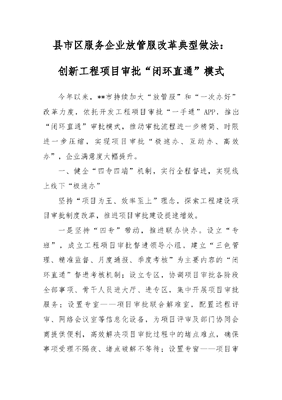 县市区服务企业放管服改革典型做法:创新工程项目审批“闭环直通”模式.docx
