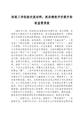 财政工作经验交流材料:抓实绩效评价提升财政监管质效.docx