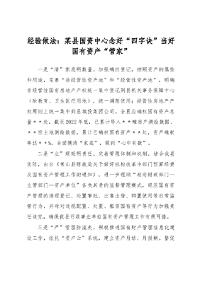 经验做法:某县国资中心念好“四字诀”当好国有资产“管家”.docx