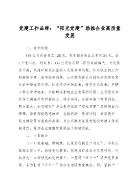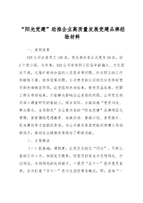 “阳光党建”助推企业高质量发展党建品牌经验材料.docx