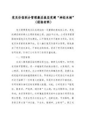 党员价值积分管理激活基层党建“神经末梢”(经验材料).docx