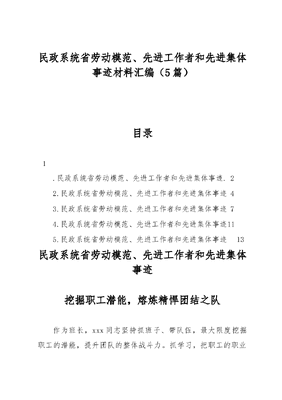 (5篇)民政系统省劳动模范、先进工作者和先进集体事迹材料汇编.docx