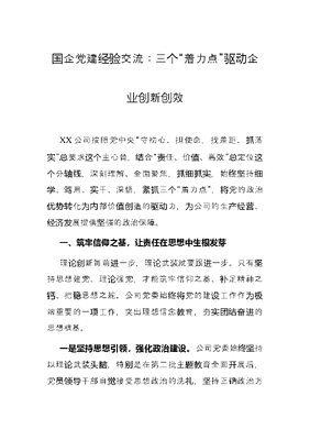国企党建经验交流:三个“着力点”驱动企业创新创效.docx