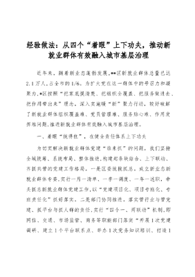 经验做法:从四个“着眼”上下功夫,推动新就业群体有效融入城市基层治理.docx