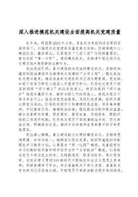 深入推进模范机关建设 全面提高机关党建质量.docx