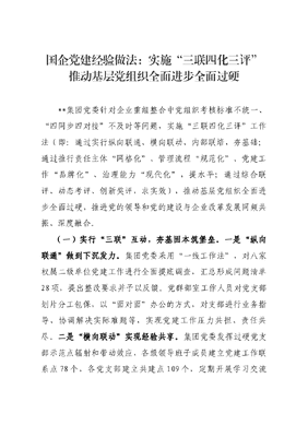 国企党建经验做法:实施”三联四化三评”推动基层党组织全面进步全面过硬.docx