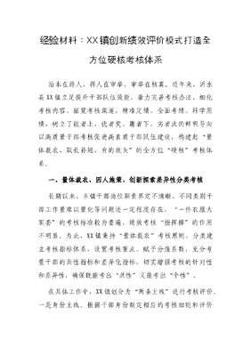 经验材料:XX镇创新绩效评价模式打造全方位硬核考核体系.docx