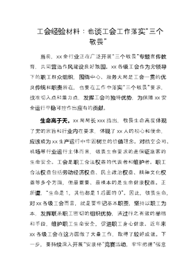 工会经验材料:也谈工会工作落实“三个敬畏”.docx