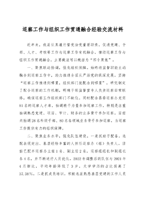 巡察工作与组织工作贯通融合经验交流材料.docx