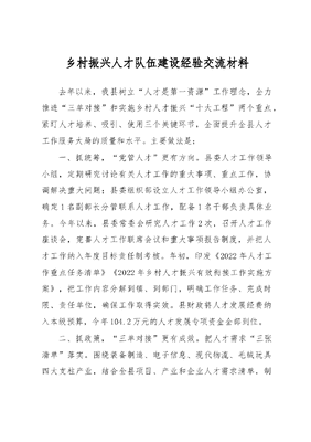 乡村振兴人才队伍建设经验交流材料.docx