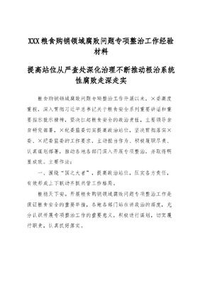 XXX粮食购销领域腐败问题专项整治工作经验材料.docx